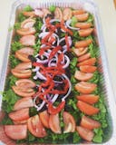 Spring mix, tomatoes, black olives, red onions, roasted peppers, and artichokes.